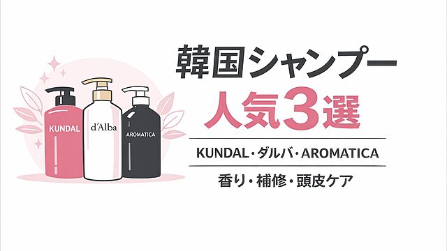 ヘアケアアイテム 香りが続く韓国シャンプー3選|KUNDAL・ダルバ・アロマティカ 毎日シャンプーしているのに、 「香りがすぐ消える」「髪がパサつく」「頭皮がベタつく」 そんな悩みを抱えていませんか。朝の通勤中、ふと風が吹いた瞬間に “いい香りですね”と言われるような髪。手ぐしを通すだけでツルッとまとまり、 一日中ストレス... 2026.04.25 ヘアケアアイテム