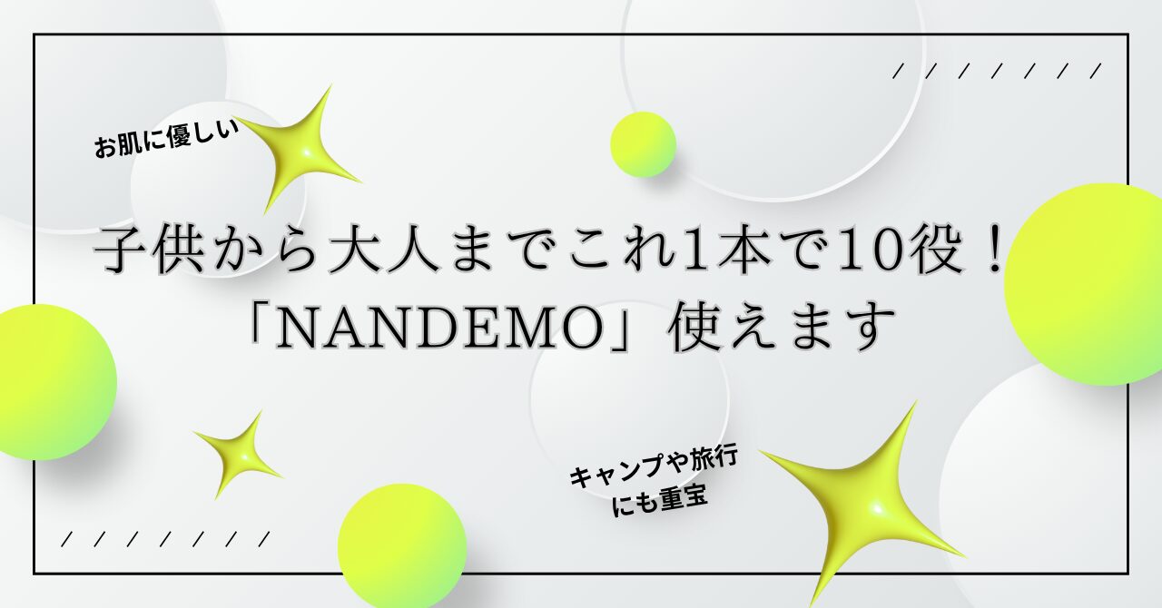 またアトピーの方やアレルギー体質、オーガニックにこだわりのある方は、NANDEMO1本あればいろんな面で活躍できるのでおすすめです。