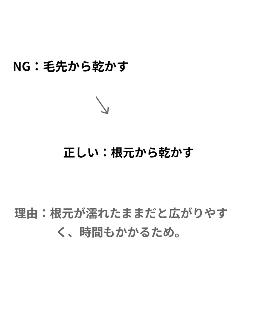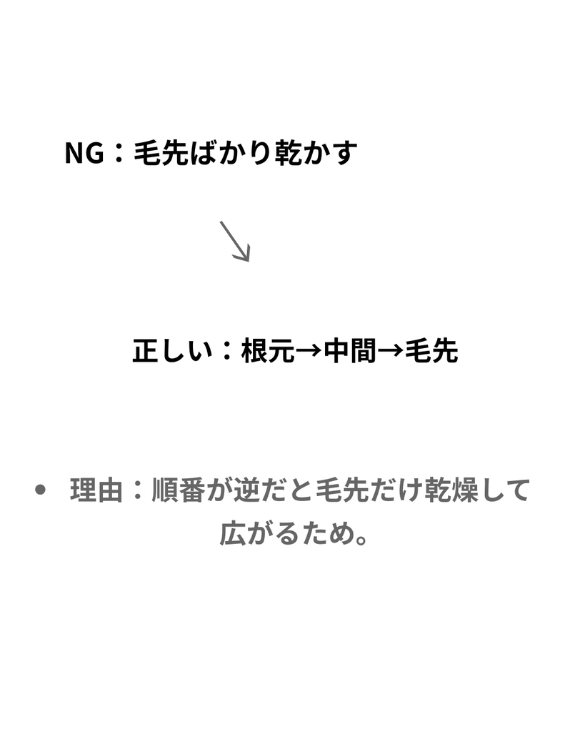 ・乾かす順番は「根元 → 中間 → 毛先」