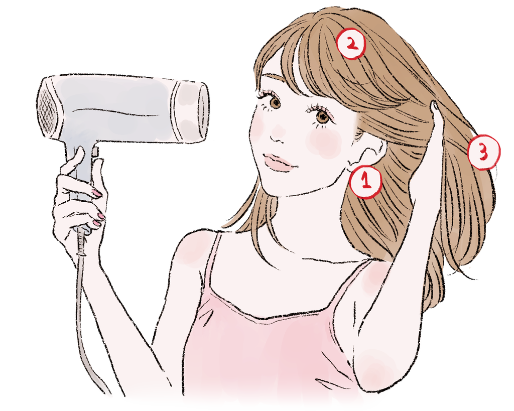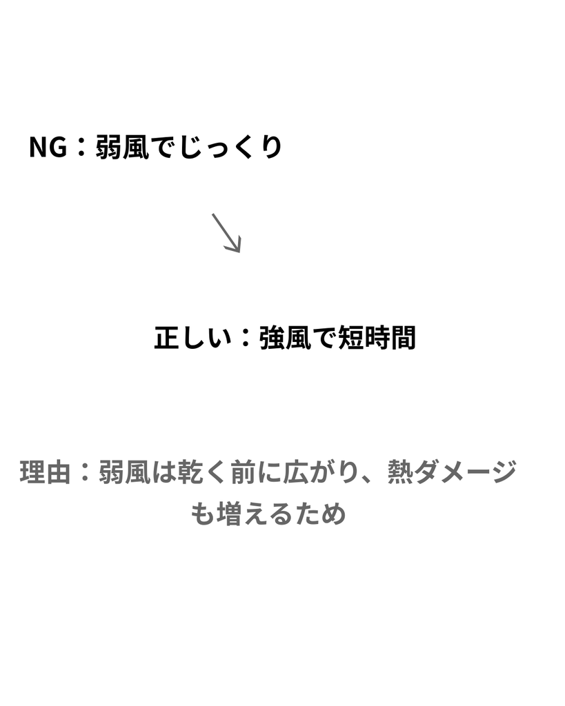 - 毛先は最後に軽く乾かす