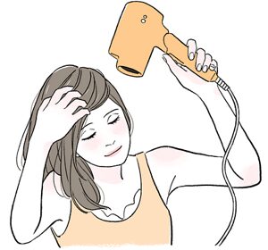 - 風量が弱いドライヤーで長時間乾かす