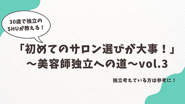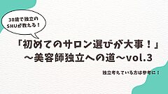 独立への道 「初めてのサロン選びが大事!」~美容師独立への道~vol.3 初めましてSHUです。現在(2025.8)美容師歴18年、独立して個人事業主になってから8年目のSHUです。こちらでは私の実体験をもとに書いてます。独立を考えている美容師さんや、これから美容師になろうとしている方に参考にしてもらえたらなと思... 2025.08.29 独立への道
